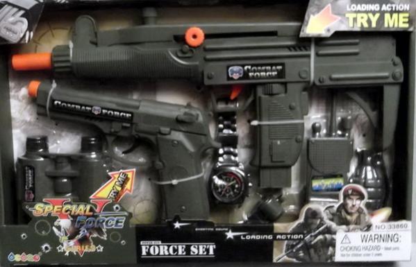 Набор оружия для мальчиков: ручной автомат, пистолет, бинокль, граната, часы, рация. 9$
