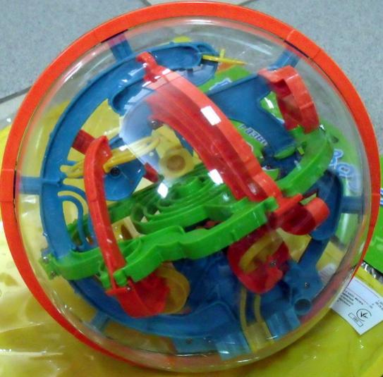 Нужно провести шарик, находящийся внутри большого прозрачного, по лабиринту дорожек, при этом не уронив шарик с этой самой дорожки.
