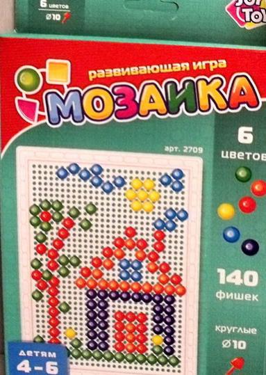 Мозаика домик - развивающая игра. 6 цветов. 140 круглых фишек размером 1 см. каждая. Производитель - Joy Toy. Для детей 4-6 лет. 6$