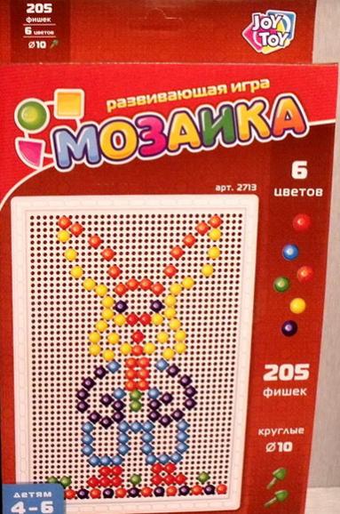 Мозаика зайчик - развивающая. 6 цветов фишек. Количество фишек мозаики - 205. Фишки круглые, диметр - 1 см. Для детей 4-6 лет. 8$