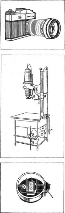 Для репродукционной съемки на 35миллиметровую пленку вместо конденсора устанавливается узкопленочная приставка (рис. 4.43) и используется объектив И58.