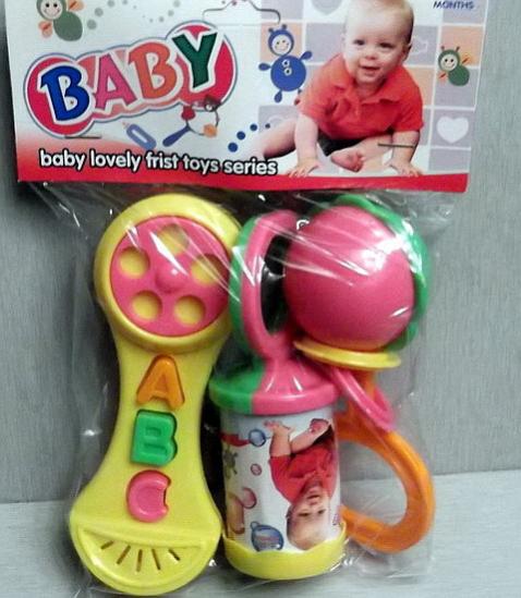 Набор погремушек Baby. В комплекте погремушка в форме телефона и две красочные погремушки различной геометрической формы.